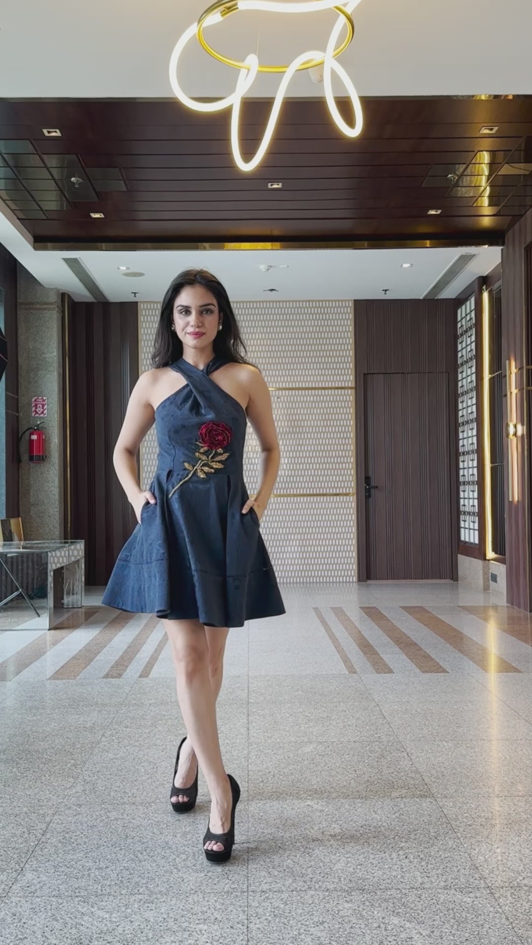 The Cross Over Halter-Neck skater mini dress is a beautiful and versatile piece that is both sexy and elegant, and the flared skater skirt is flattering on all body types. The lace bidding details add a touch of romance, while the contrasting sequin rose embroidery adds a pop of colour and sophistication. This dress can be dressed up for a night out or dressed down for a day out, and it is sure to turn heads wherever you go. Here are some ideas on how to style this statement piece from DIVASPOPUP! • For a night out, pair the dress with high heels and statement jewellery. You could also add a fur coat or pashmina for a touch of glamour. • For a day out, pair the dress with sandals or flats and a denim jacket. You could also add a hat or scarf to protect yourself from the sun. • For a more casual look, pair the dress with sneakers or boots. You could also add a hoodie or cardigan for warmth. No matter how you style it, the cross over halter-neck silk jacquard skater mini dress is sure to make you look and feel your best. It is a perfect dress for any occasion, and it is sure to become a staple in your wardrobe.